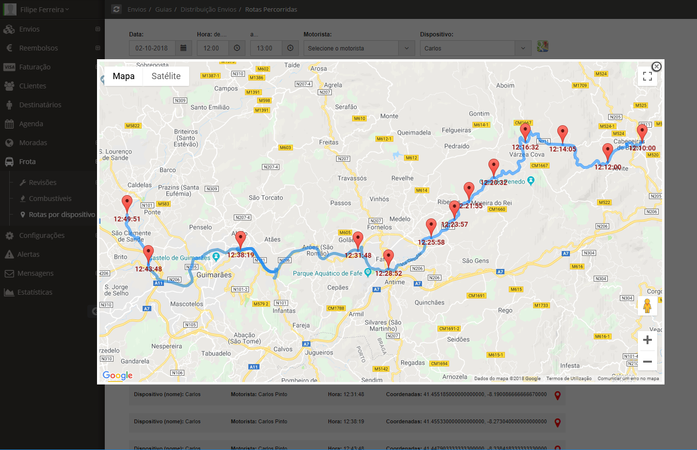 - Distribuição de recolhas e entregas de envios (Rotas/Viaturas em distribuição)